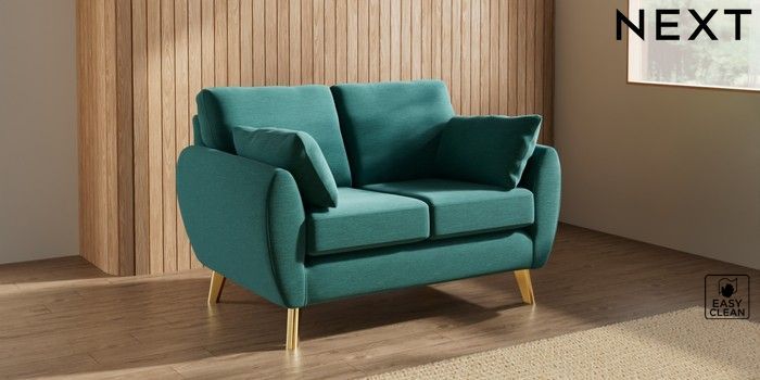 7.3.1 Buy Wilson 2 Seater Small Sofa Fine Chenille Easy Clean Dark Juniper Green Metal Tapered - Gold from the Next UK online shop