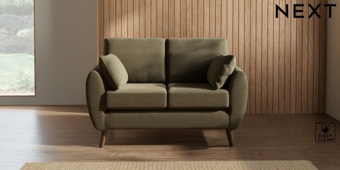 7.3.1 Buy Wilson 2 Seater Small Sofa Fine Chenille Easy Clean Dark Moss Green Retro Tapered - Mid from the Next UK online shop Click here to use our accessible website