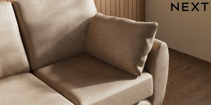 7.3.1 Buy Wilson 2 Seater Small Sofa Luxe Chenille Mid Camel Beige Low Retro Tapered Metal Cap - Mid from the Next UK online shop Click here to use our accessible website