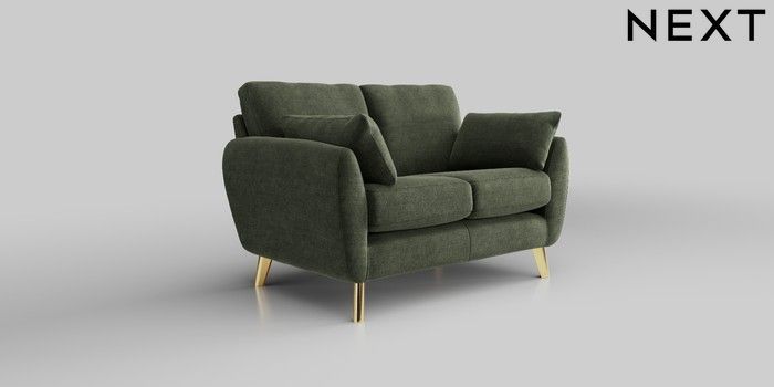 6.12.1 Buy Wilson 2 Seater Small Sofa Luxe Chenille Mid Green Metal Tapered - Gold from the Next UK online shop Click here to use our accessible website