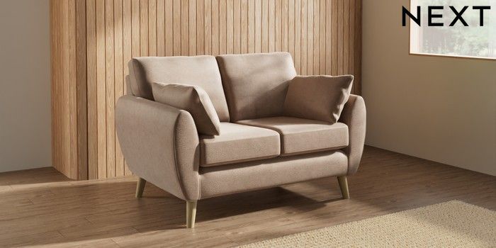 7.3.1 Buy Wilson 2 Seater Small Sofa Luxe Chenille Mid Natural Retro Tapered - Light from the Next UK online shop