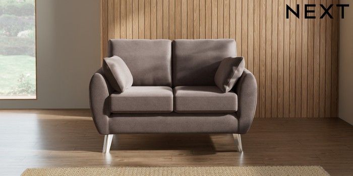 7.3.1 Buy Wilson 2 Seater Small Sofa Luxe Chenille Mink Brown Metal Tapered - Chrome from the Next UK online shop Click here to use our accessible website