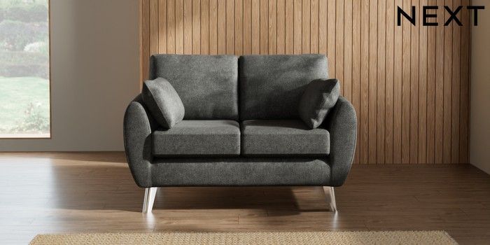 7.3.1 Buy Wilson 2 Seater Small Sofa Plush Chenille Dark Grey Metal Tapered - Chrome from the Next UK online shop