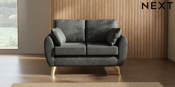 7.3.1 Buy Wilson 2 Seater Small Sofa Plush Chenille Dark Grey Metal Tapered - Gold from the Next UK online shop