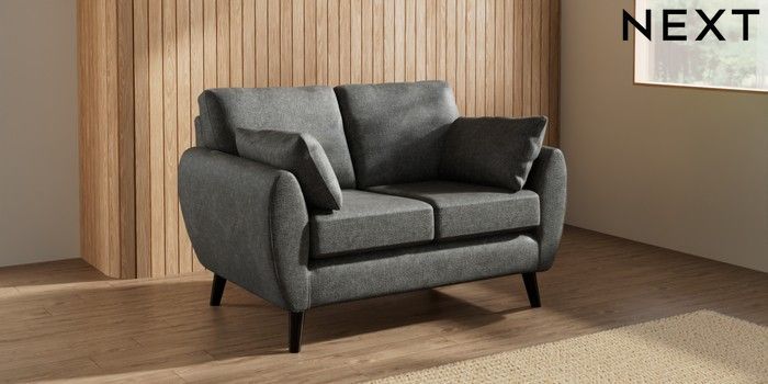7.3.1 Buy Wilson 2 Seater Small Sofa Plush Chenille Dark Grey Retro Tapered - Dark from the Next UK online shop