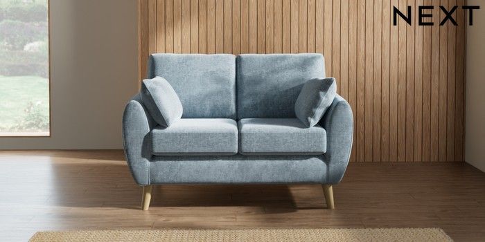 7.2.6 Buy Wilson 2 Seater Small Sofa Plush Chenille Light Blue Retro Tapered - Light from the Next UK online shop Click here to use our accessible website