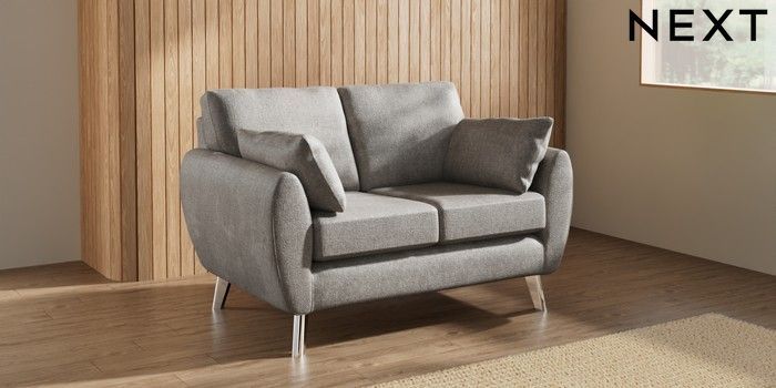 7.3.1 Buy Wilson 2 Seater Small Sofa Plush Chenille Light Grey Metal Tapered - Chrome from the Next UK online shop