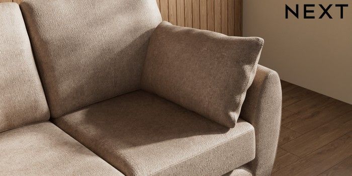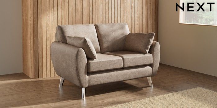 7.3.1 Buy Wilson 2 Seater Small Sofa Plush Chenille Mid Natural Metal Tapered - Chrome from the Next UK online shop
