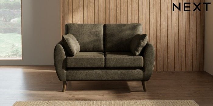 7.2.10 Buy Wilson 2 Seater Small Sofa Plush Chenille Moss Green Retro Tapered - Mid from the Next UK online shop Click here to use our accessible website