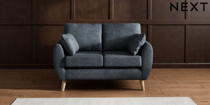 7.2.10 Buy Wilson 2 Seater Small Sofa Plush Chenille Slate Blue Retro Tapered - Light from the Next UK online shop Click here to use our accessible website