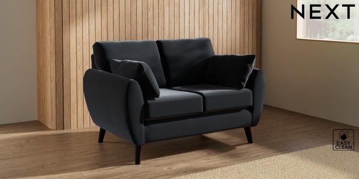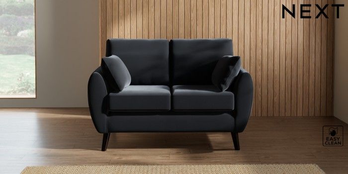7.3.1 Buy Wilson 2 Seater Small Sofa Plush Velvet Easy Clean Charcoal Grey Retro Tapered - Dark from the Next UK online shop