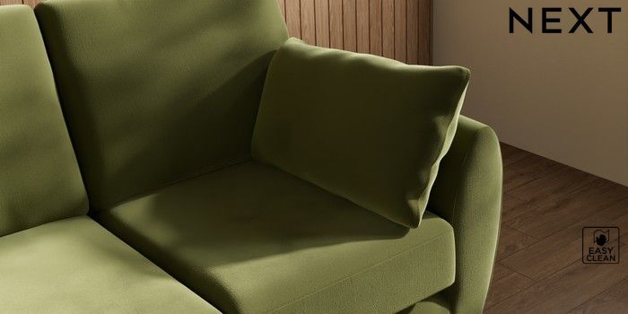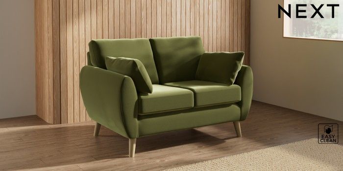 7.3.1 Buy Wilson 2 Seater Small Sofa Plush Velvet Easy Clean Mid Olive Green Retro Tapered - Light from the Next UK online shop