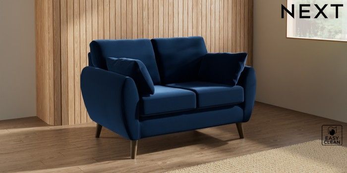 7.3.1 Buy Wilson 2 Seater Small Sofa Plush Velvet Easy Clean Navy Blue Retro Tapered - Mid from the Next UK online shop
