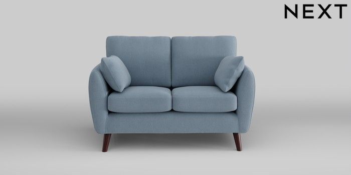 6.12.1 Buy Wilson 2 Seater Small Sofa Relaxed Linen Look Mid Blue Retro Tapered - Dark Brown from the Next UK online shop Click here to use our accessible website