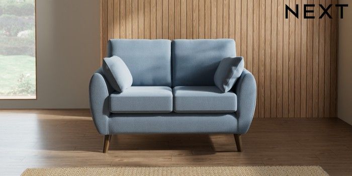 7.2.10 Buy Wilson 2 Seater Small Sofa Relaxed Linen Look Mid Blue Retro Tapered - Mid from the Next UK online shop Click here to use our accessible website