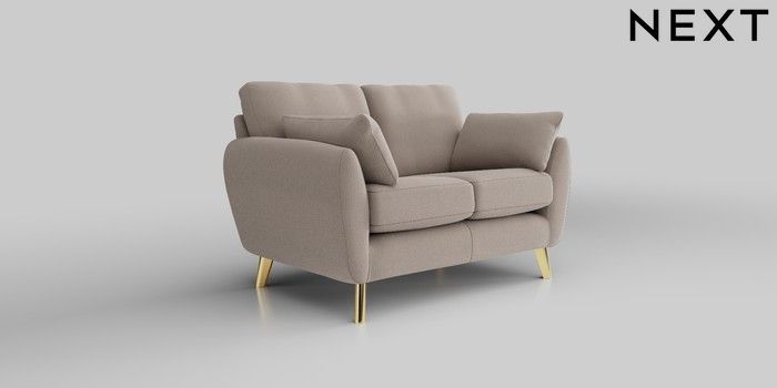 6.12.1 Buy Wilson 2 Seater Small Sofa Relaxed Linen Look Mid Natural Metal Tapered - Gold from the Next UK online shop Click here to use our accessible website