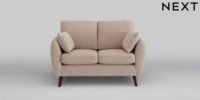 6.12.1 Buy Wilson 2 Seater Small Sofa Relaxed Linen Look Mid Natural Retro Tapered - Dark Brown from the Next UK online shop Click here to use our accessible website
