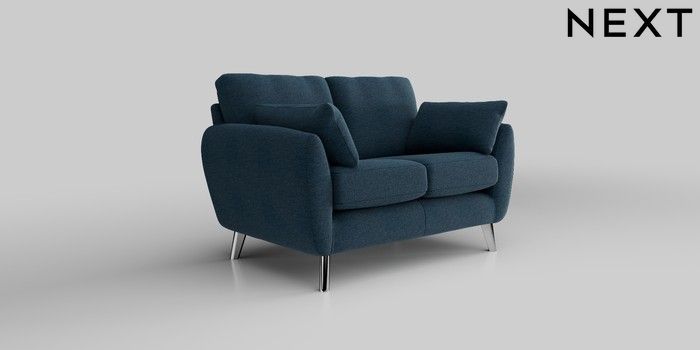 6.12.1 Buy Wilson 2 Seater Small Sofa Ripple Chenille Dark Blue Metal Tapered - Chrome from the Next UK online shop Click here to use our accessible website