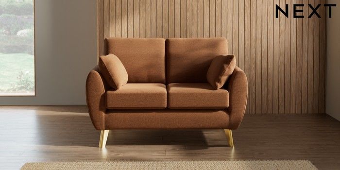 7.2.10 Buy Wilson 2 Seater Small Sofa Ripple Chenille Mid Rust Brown Metal Tapered - Gold from the Next UK online shop Click here to use our accessible website