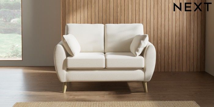 7.2.10 Buy Wilson 2 Seater Small Sofa Ripple Chenille Oyster Retro Tapered - Light from the Next UK online shop Click here to use our accessible website