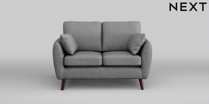 6.12.1 Buy Wilson 2 Seater Small Sofa Studio Chenille Mid Grey Retro Tapered - Dark Brown from the Next UK online shop Click here to use our accessible website