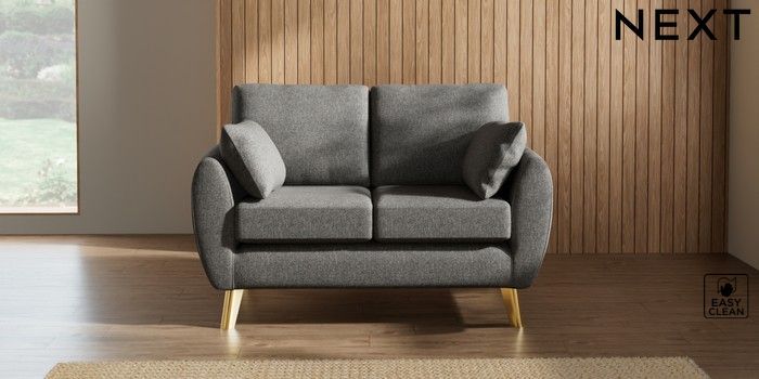 7.3.1 Buy Wilson 2 Seater Small Sofa Tweedy Blend Easy Clean Dark Grey Metal Tapered - Gold from the Next UK online shop