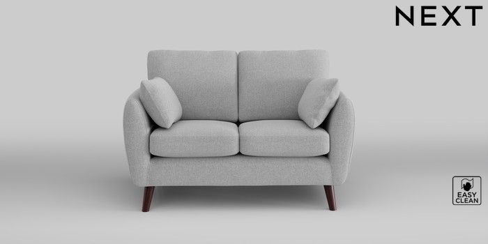 6.12.1 Buy Wilson 2 Seater Small Sofa Tweedy Blend Easy Clean Light Silver Grey Retro Tapered - Dark Brown from the Next UK online shop Click here to use our accessible website