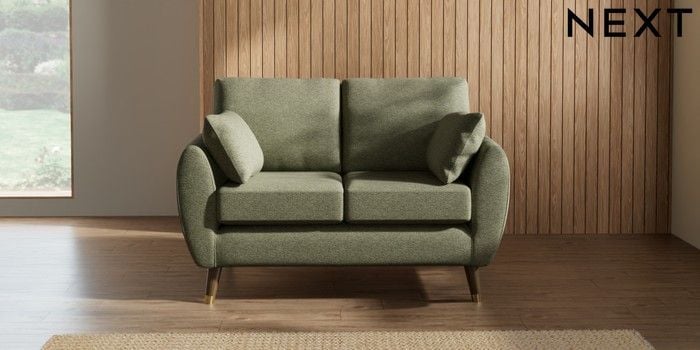 7.3.1 Buy Wilson 2 Seater Small Sofa Tweedy Chenille Mid Moss Green Low Retro Tapered Metal Cap - Mid from the Next UK online shop