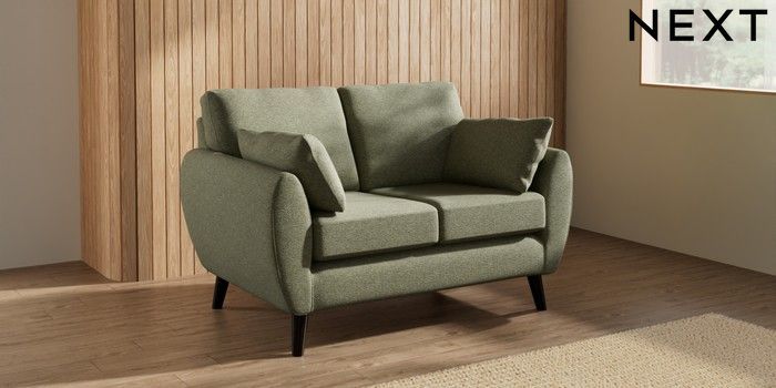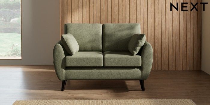 7.3.1 Buy Wilson 2 Seater Small Sofa Tweedy Chenille Mid Moss Green Retro Tapered - Dark from the Next UK online shop