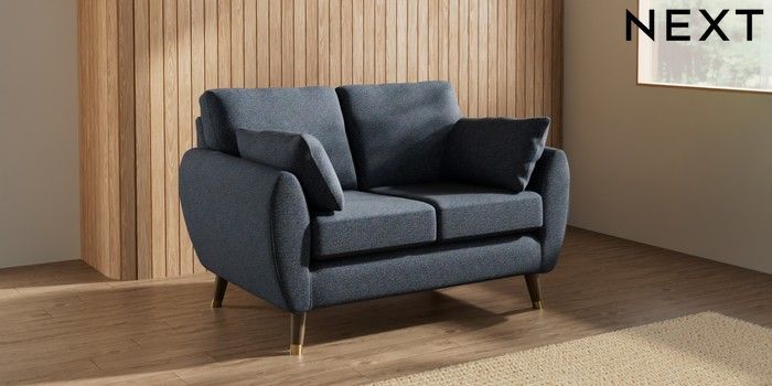 7.3.1 Buy Wilson 2 Seater Small Sofa Tweedy Chenille Navy Blue Low Retro Tapered Metal Cap - Mid from the Next UK online shop