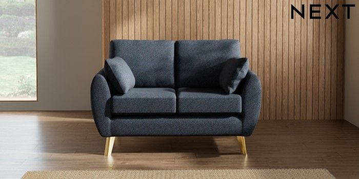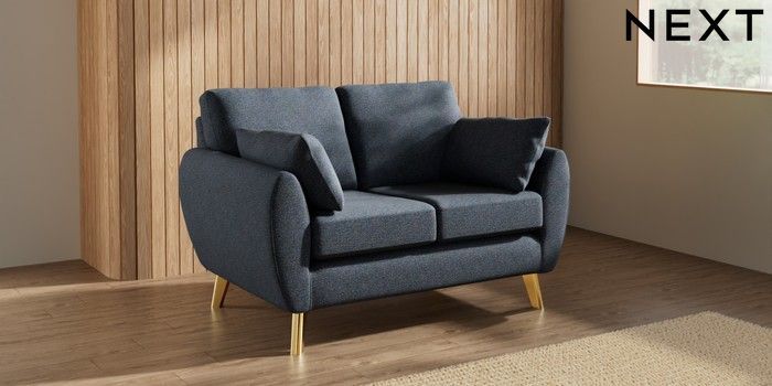 7.3.1 Buy Wilson 2 Seater Small Sofa Tweedy Chenille Navy Blue Metal Tapered - Gold from the Next UK online shop