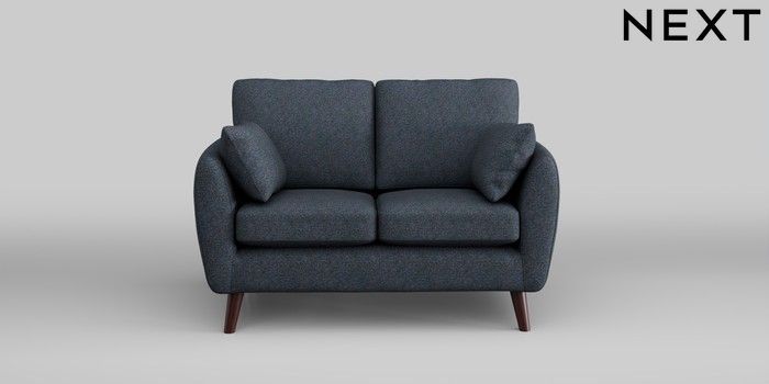 6.12.1 Buy Wilson 2 Seater Small Sofa Tweedy Chenille Navy Blue Retro Tapered - Dark Brown from the Next UK online shop Click here to use our accessible website