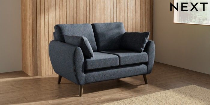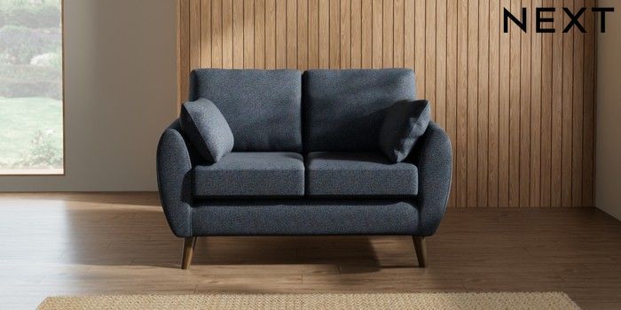 7.3.1 Buy Wilson 2 Seater Small Sofa Tweedy Chenille Navy Blue Retro Tapered - Mid from the Next UK online shop