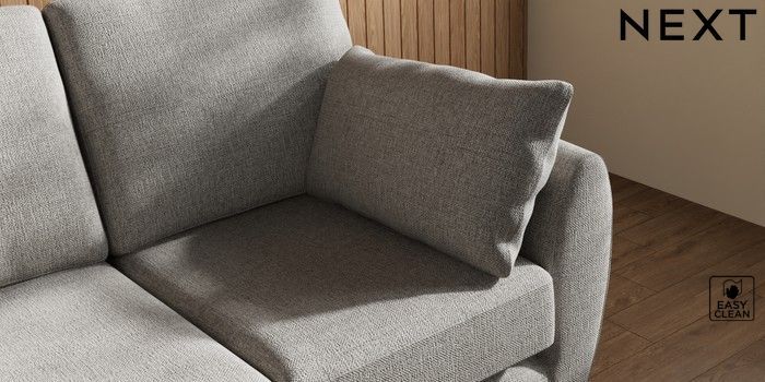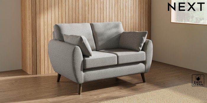 7.3.1 Buy Wilson 2 Seater Small Sofa Woven Chenille Easy Clean Light Grey Retro Tapered - Mid from the Next UK online shop