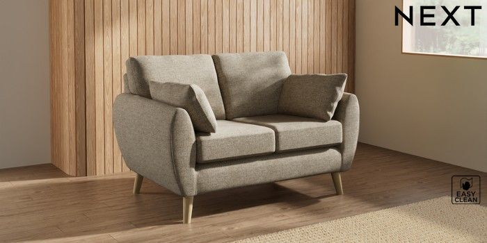 7.3.1 Buy Wilson 2 Seater Small Sofa Woven Chenille Easy Clean Mid Natural Retro Tapered - Light from the Next UK online shop