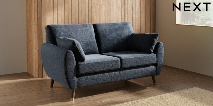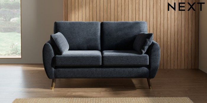 7.3.1 Buy Wilson 2 Seater Sofa Boucle Chenille Dark Slate Blue Low Retro Tapered Metal Cap - Mid from the Next UK online shop
