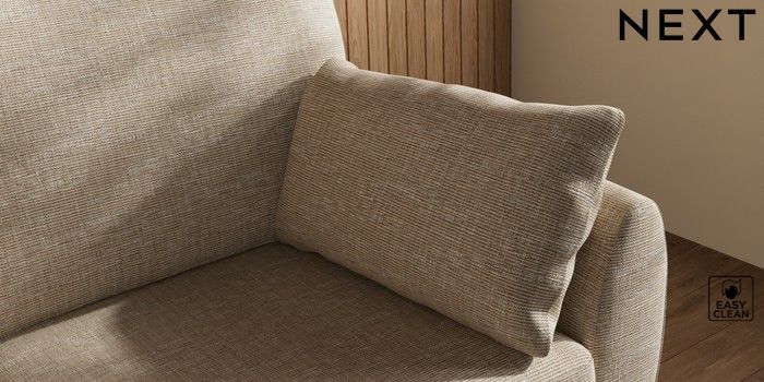 7.3.1 Buy Wilson 2 Seater Sofa Boucle Weave Easy Clean Dark Natural Metal Tapered - Gold from the Next UK online shop