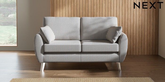 7.2.10 Buy Wilson 2 Seater Sofa Chenille Stripe Slate Blue Metal Tapered - Chrome from the Next UK online shop Click here to use our accessible website