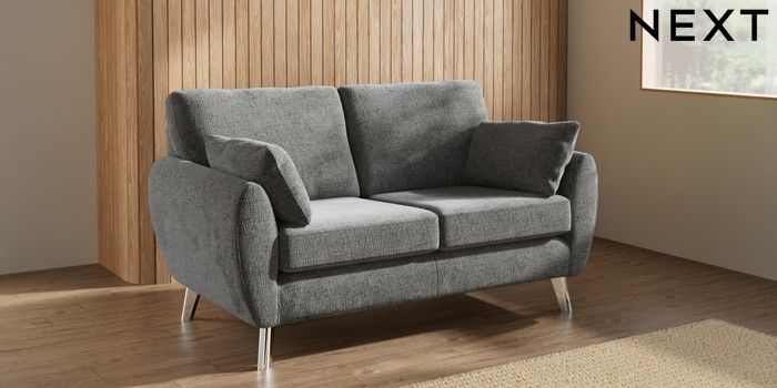 7.3.1 Buy Wilson 2 Seater Sofa Chunky Chenille Dark Grey Metal Tapered - Chrome from the Next UK online shop