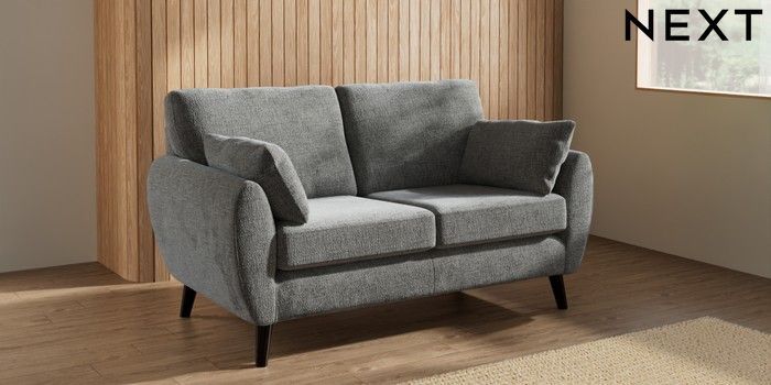 7.3.1 Buy Wilson 2 Seater Sofa Chunky Chenille Dark Grey Retro Tapered - Dark from the Next UK online shop