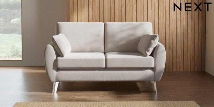 7.3.1 Buy Wilson 2 Seater Sofa Chunky Chenille Oyster Metal Tapered - Chrome from the Next UK online shop