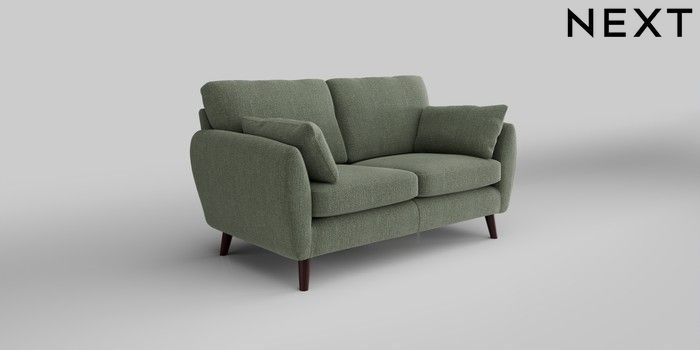 6.12.1 Buy Wilson 2 Seater Sofa Chunky Texture Mid Forest Green Retro Tapered - Dark Brown from the Next UK online shop Click here to use our accessible website