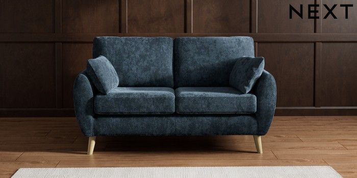 7.3.1 Buy Wilson 2 Seater Sofa Distressed Velour Midnight Blue Retro Tapered - Light from the Next UK online shop Click here to use our accessible website
