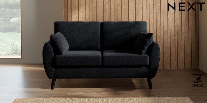 7.3.1 Buy Wilson 2 Seater Sofa Fine Chenille Easy Clean Black Retro Tapered - Dark from the Next UK online shop