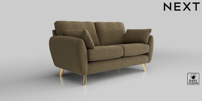 6.12.1 Buy Wilson 2 Seater Sofa Fine Chenille Easy Clean Dark Moss Green Metal Tapered - Gold from the Next UK online shop Click here to use our accessible website