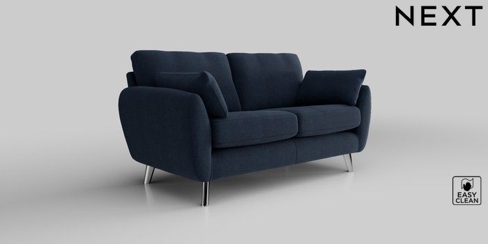 6.12.1 Buy Wilson 2 Seater Sofa Fine Chenille Easy Clean Dark Navy Blue Metal Tapered - Chrome from the Next UK online shop Click here to use our accessible website