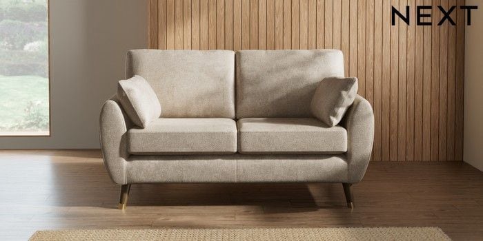 7.3.1 Buy Wilson 2 Seater Sofa Plush Chenille Light Natural Low Retro Tapered Metal Cap - Mid from the Next UK online shop Click here to use our accessible website