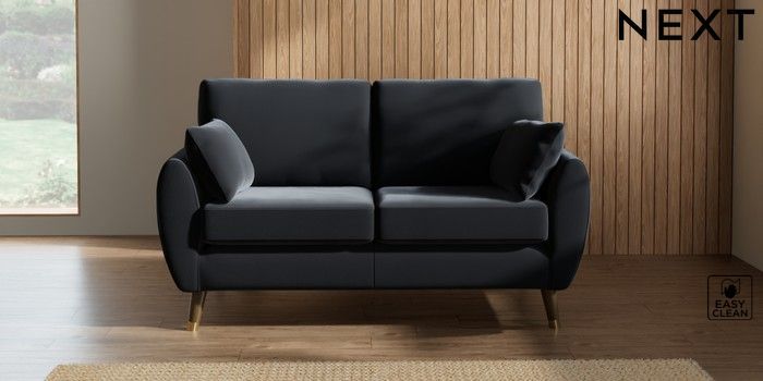 7.3.1 Buy Wilson 2 Seater Sofa Plush Velvet Easy Clean Charcoal Grey Low Retro Tapered Metal Cap - Mid from the Next UK online shop Click here to use our accessible website