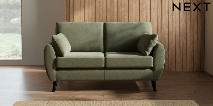 7.2.10 Buy Wilson 2 Seater Sofa Ripple Chenille Mid Moss Green Retro Tapered - Dark from the Next UK online shop Click here to use our accessible website