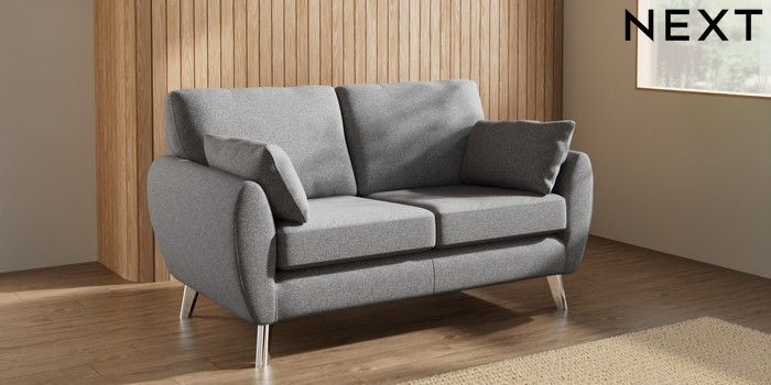 7.3.1 Buy Wilson 2 Seater Sofa Studio Chenille Mid Grey Metal Tapered - Chrome from the Next UK online shop